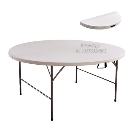 This 5ft Outdoor Foldable Table is beneficial in a multitude of settings that include banquet halls, conference centers, cafeterias, schools, and in the home. The durable blow molded top is low maintenance and cleans easily. The table legs fold under the table to make storage more convenient and for better portability.